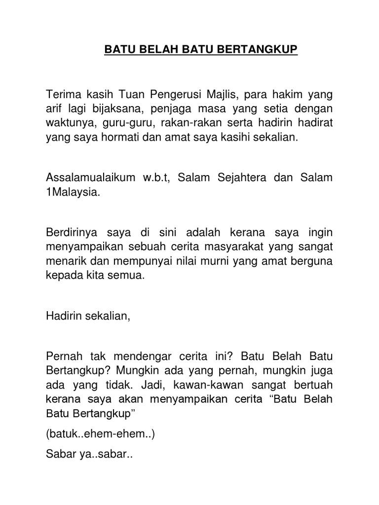 Skrip Drama Batu Belah Batu Bertangkup Docx Document