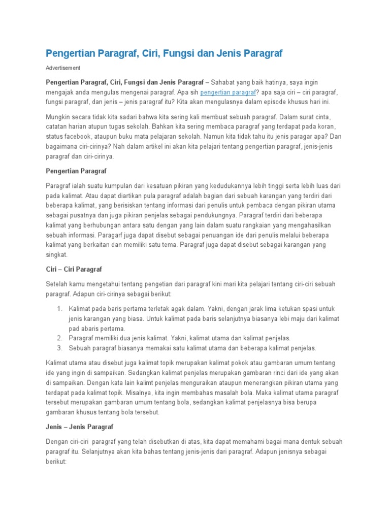 Pengertian Paragraf Ciri Fungsi Dan Jenis Paragraf