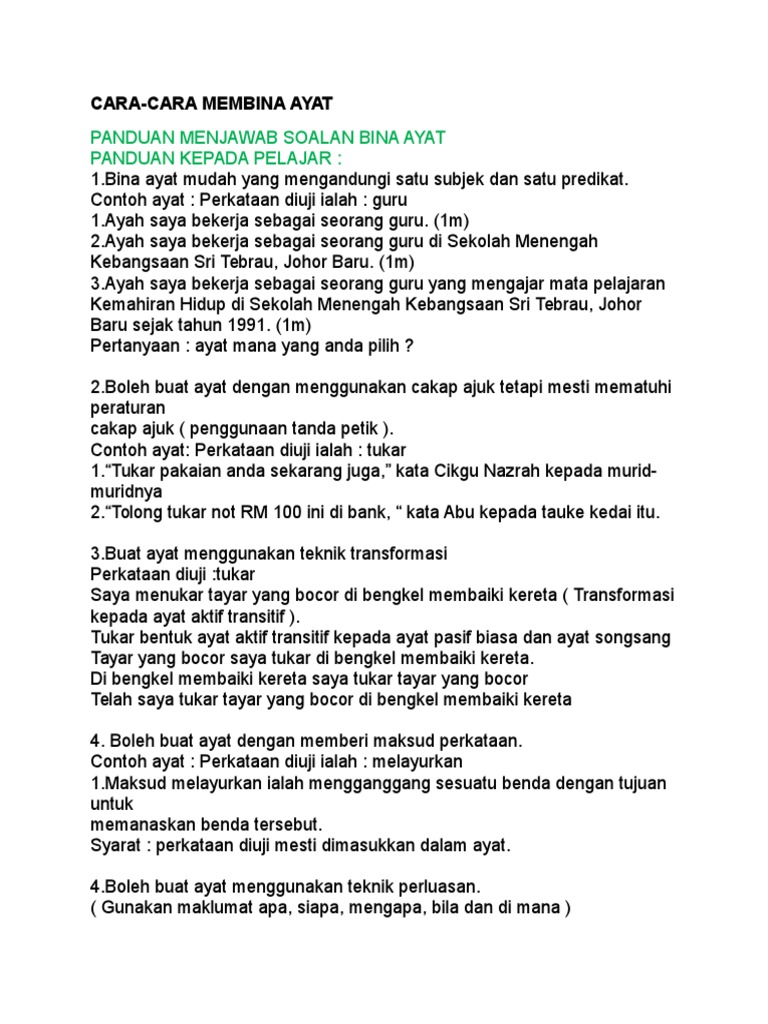 Laman Bahasa Melayu Spm Cadangan Soalan 3 A Membina Ayat Menggunakan Perkataan Diberi Peperiksaan Percubaan Spm Mrsm