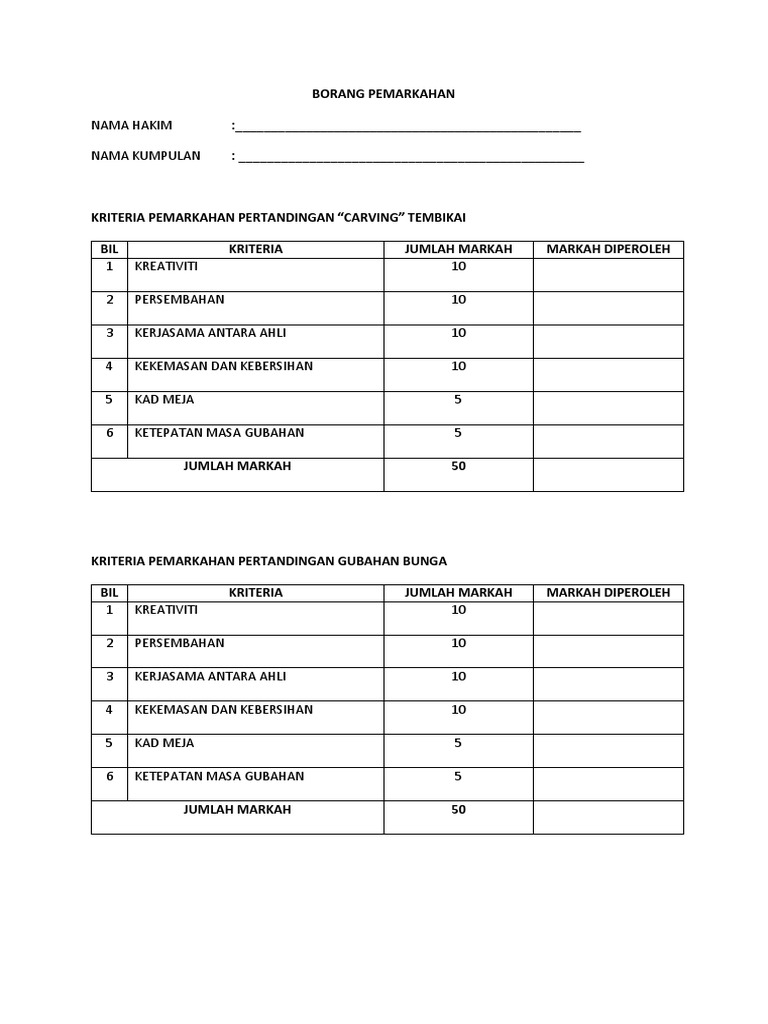 Borang Pemarkahan Pengadil