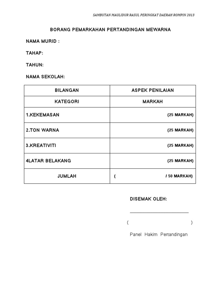 138825175 Borang Pemarkahan Pertandingan Mewarna Docx Document