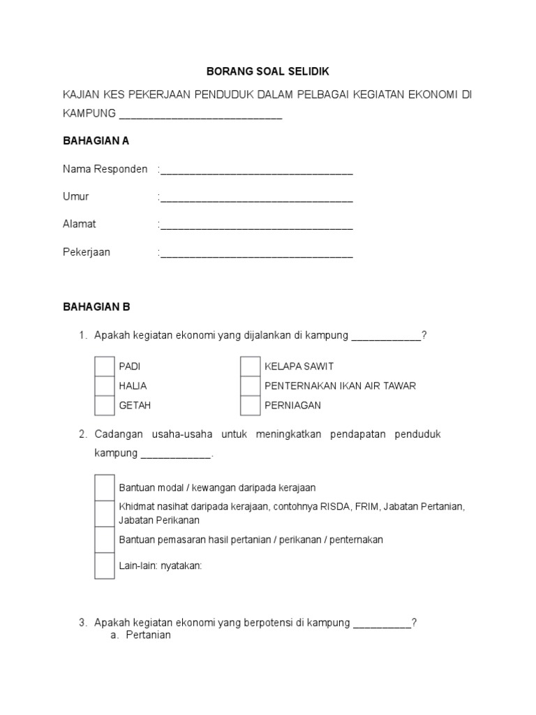 Contoh Soalan Borang Soal Selidik Tentang Perpaduan J Kosong W