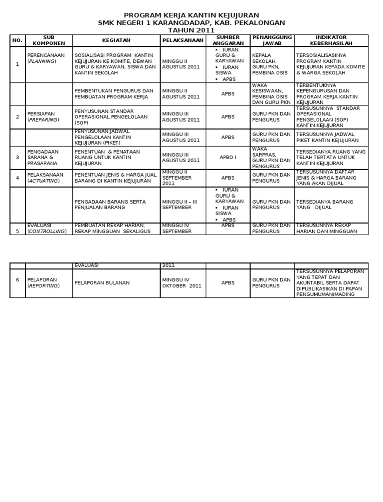 Program Kerja Kantin Kejujuran Smk 1 Karangdadap Kab Pkl