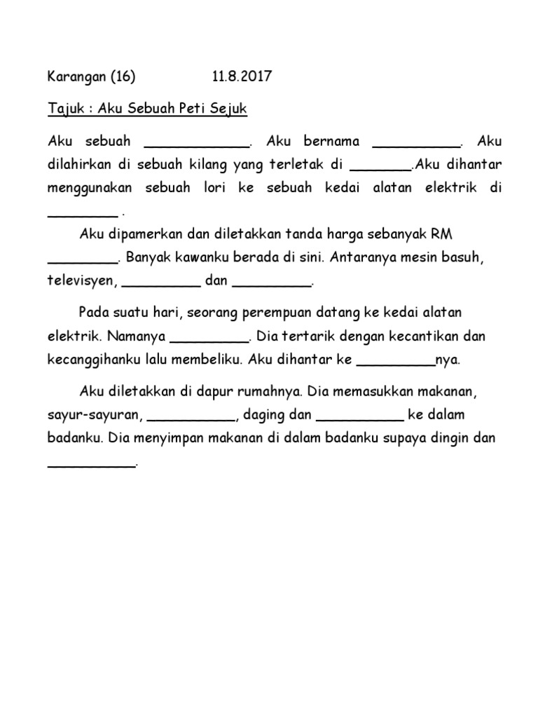 Aku Sebuah Peti Sejuk Karangan Tahun 4