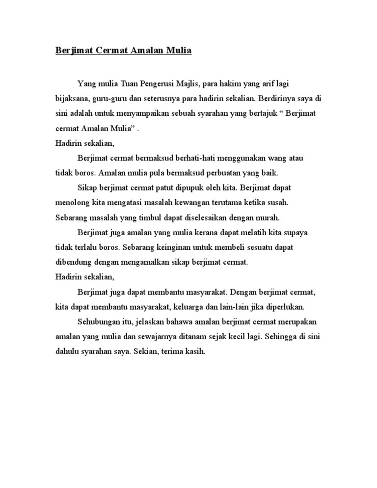 Contoh Karangan Amalan Berjimat Cermat Spm