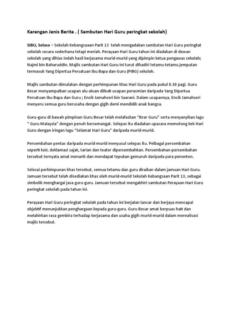 Doc Berita Gambaran Sambutan Hari Guru Rosni Yus Academia Edu