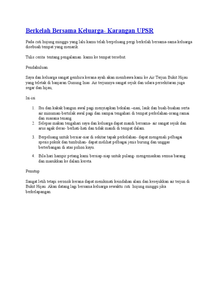 Bahasa Melayu Isi Isi Ringkas Karangan Upsr Doc 60 Contoh Karangan Menggunakan 10 Ayat Mudah Tema Keluarga 1 Tuliskan Sebuah Karangan Yang Bertajuk Course Hero