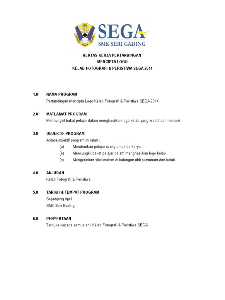 Contoh Kertas Kerja Sukan