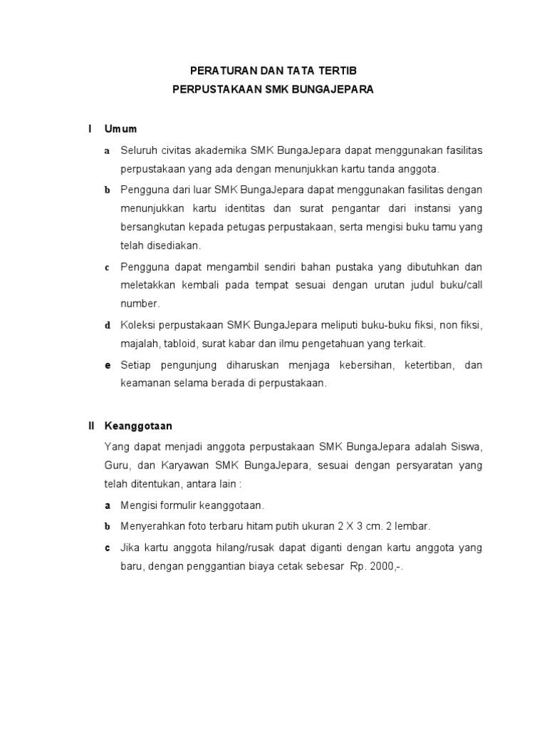 Contoh Peraturan Dan Tata Tertib Perpustakaan