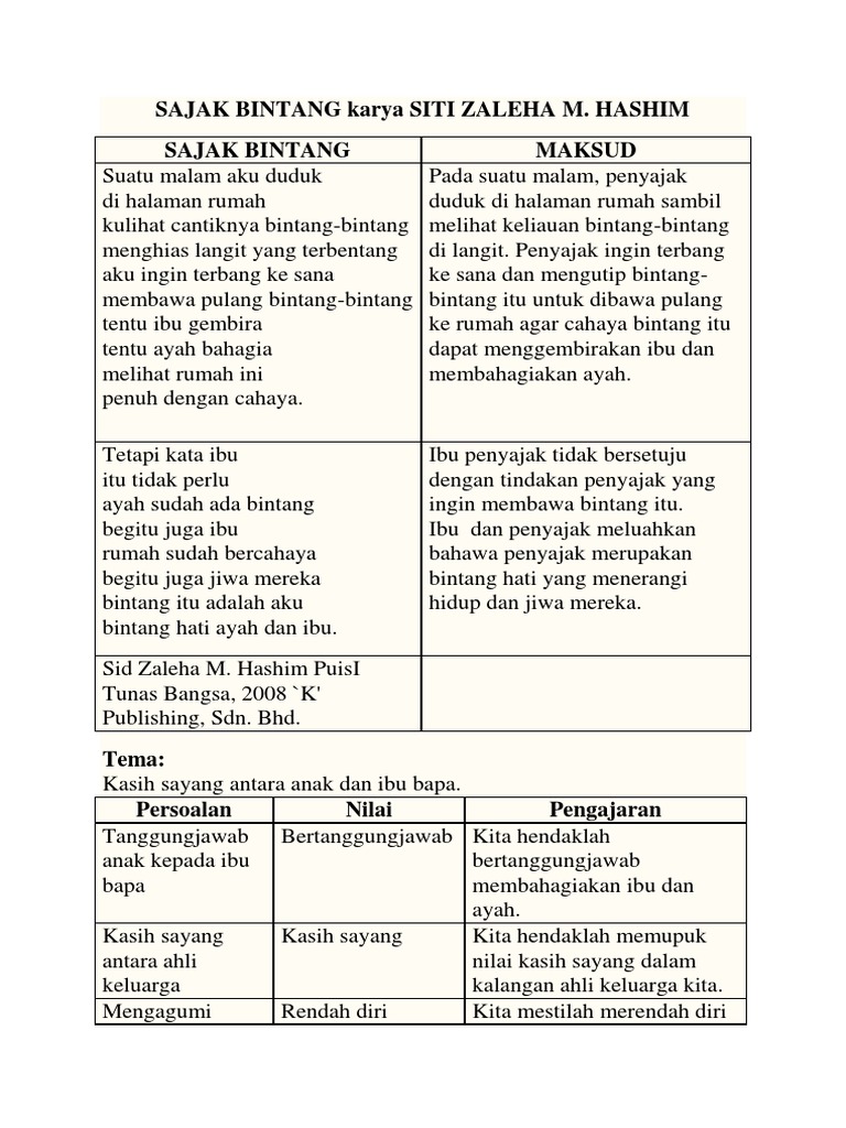 Form3 Sajak Bintang Karya Siti Zaleha M Hashim Sajak Bintang Maksud