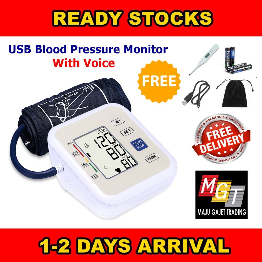 Free Gift 2 In 1 Usb Blood Pressure Monitor Heart Rate Pulse Arm Machine Tekanan Darah Tinggi English Voice Prompt Shopee Malaysia