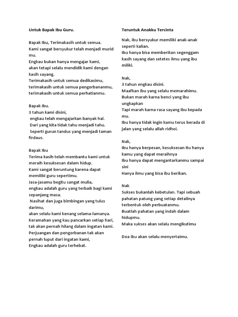 Untuk Bapak Ibu Guru Teruntuk Anakku Tercinta
